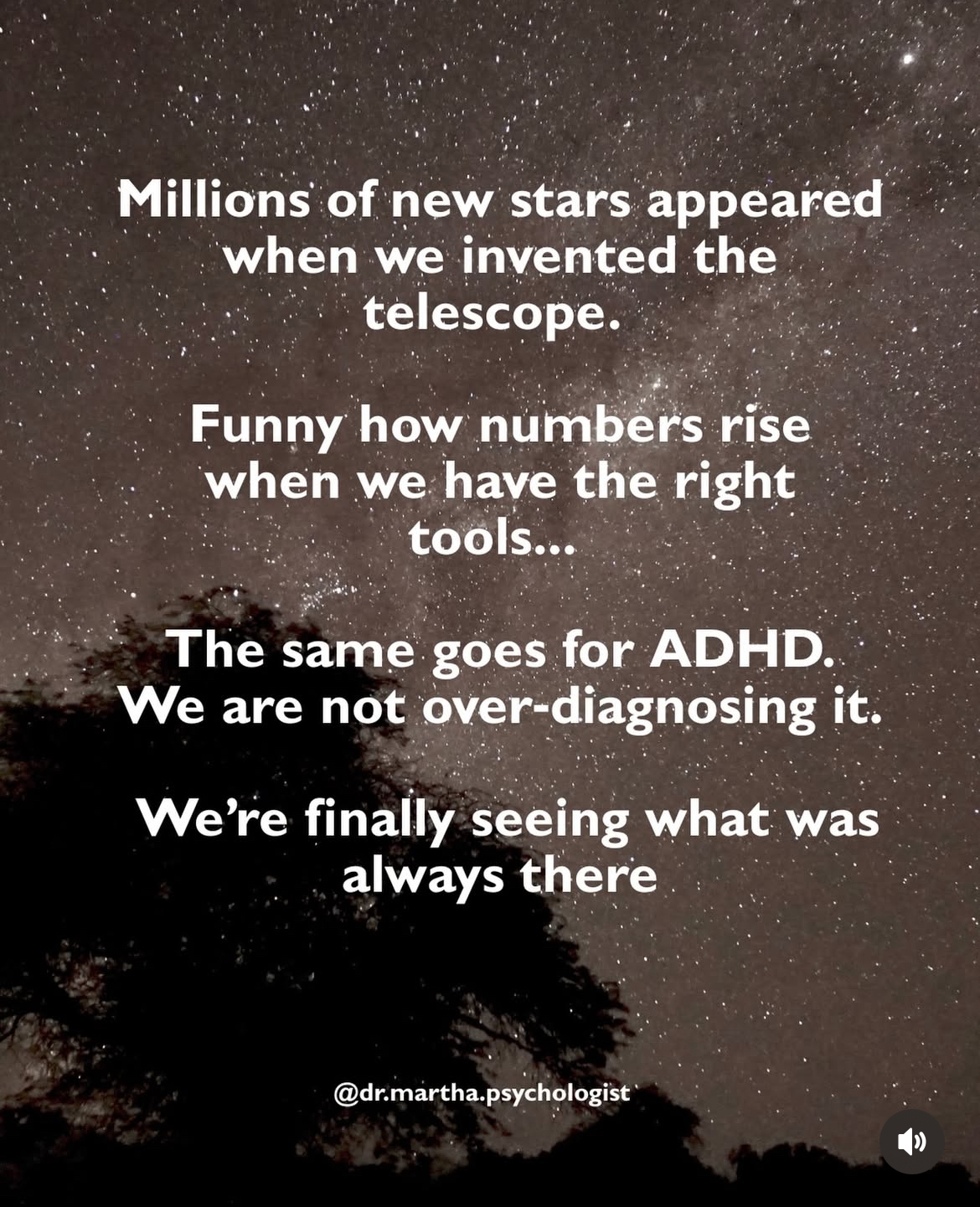 We are not in the middle of a neurodivergent epidemic. I didn’t suddenly catch ADHD in the last few years – the signs have been there since I was tiny, but ADHD was barely recognised in the 1980’s, and even less so in girls, so I was missed. I was also academic, got things done (often at the last minute). Nobody seemed that surprised when my GCSE and then A-level results weren’t near my predicted grades as I was always daydreaming, but if I were a child now, plucking feather duvets, not getting school work done on time, not concentrating in class, being messy, always forgetting where I put things, having a large gap between my reading and spoken language and my written language, the school, or my parents, may have flagged this. I may have had an assessment much, much younger.
