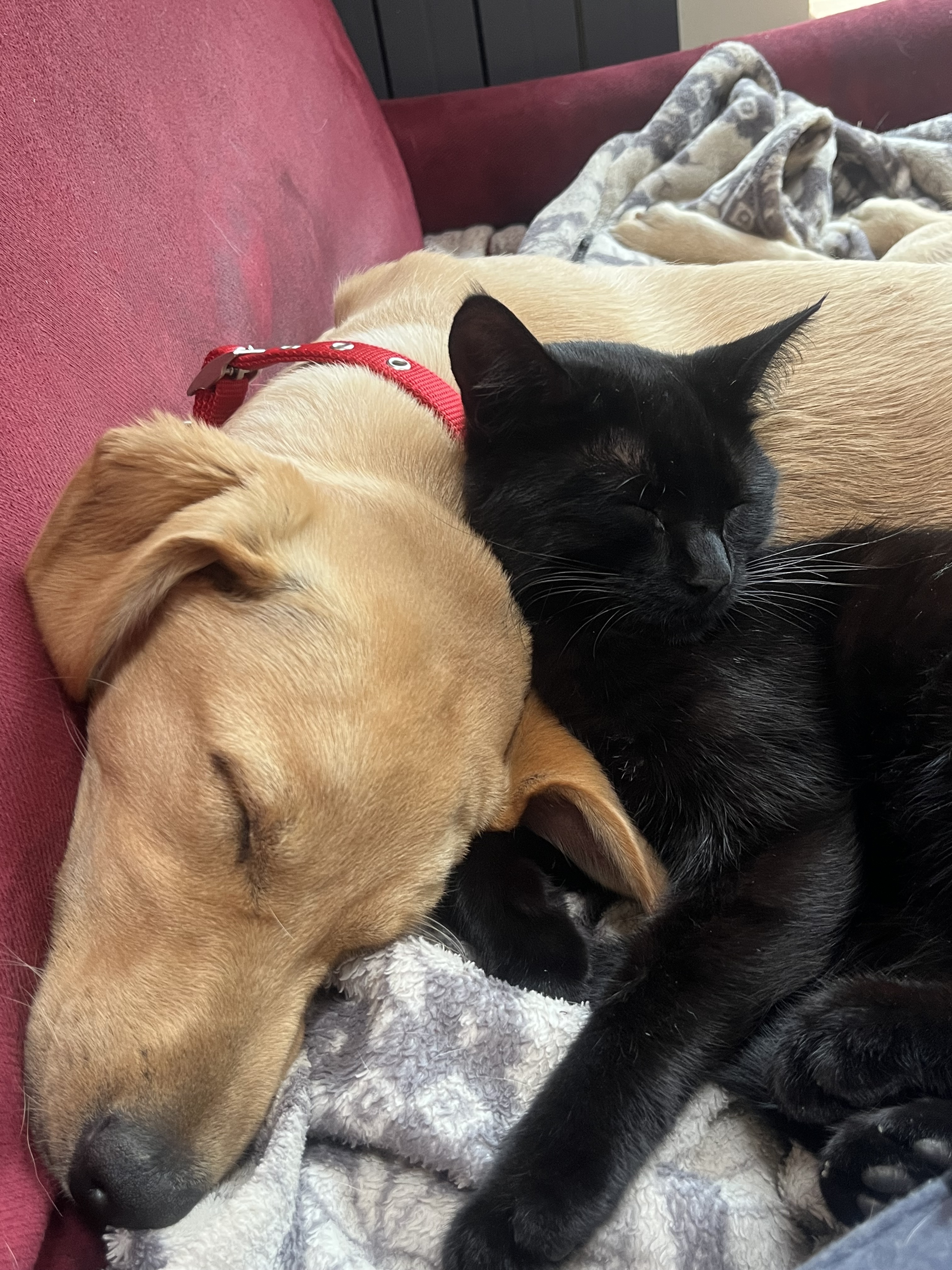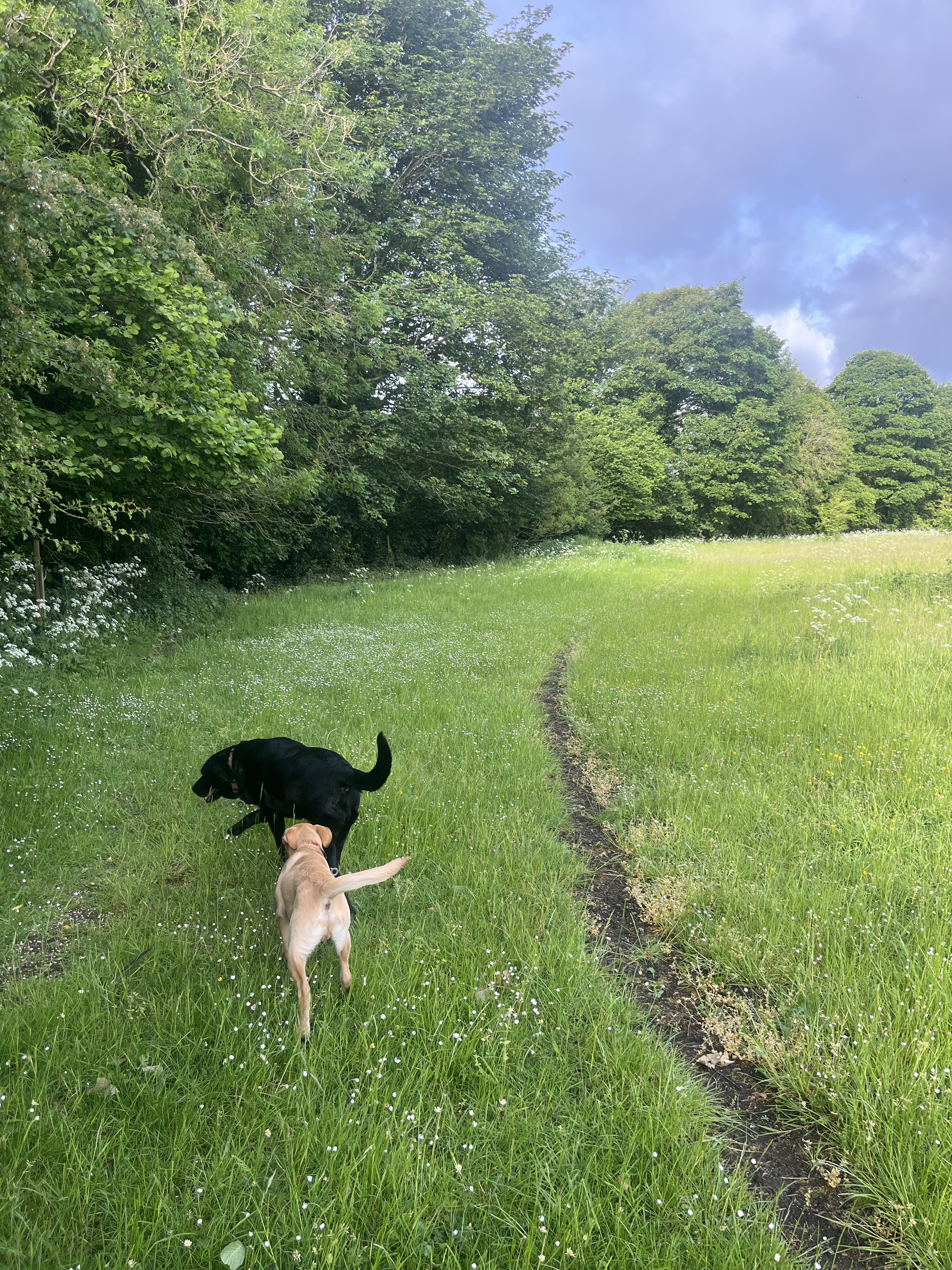 We have a 5 month old puppy who came to us via an amazing local rescue. He is a labradoodle, although he looks and acts far more Labrador than poodle. He gets on well with our older lab, Ned, he is best buddies with our rescue cat, Salem, and even gets on with the rescue ponies (there seems to be a rescue theme here!).