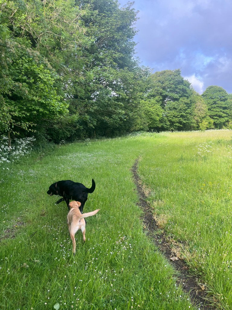 We know that at some point in the future, he may have to have the leg amputated – but he might not. We have spoken at length to the rescue and to our vets, and we are treating him like any other 5 month old puppy. We don’t walk him too far, but at home he has as much free exercise as he wants. He is walked off the lead in the field every morning and afternoon so he can choose if he wants to walk, run, chase Ned or just potter by my side (FYI it’s usually chase Ned).